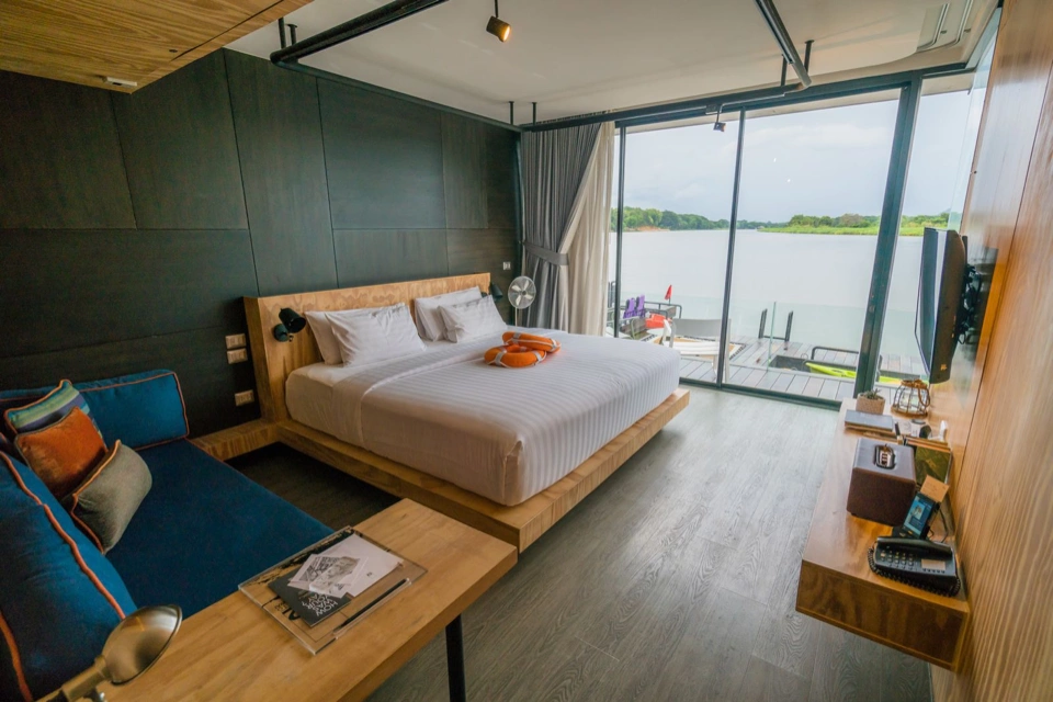 Yes. The X-Float Luxe is a floating cabin located directly on the River Kwai, offering a unique over-water stay with panoramic river views.