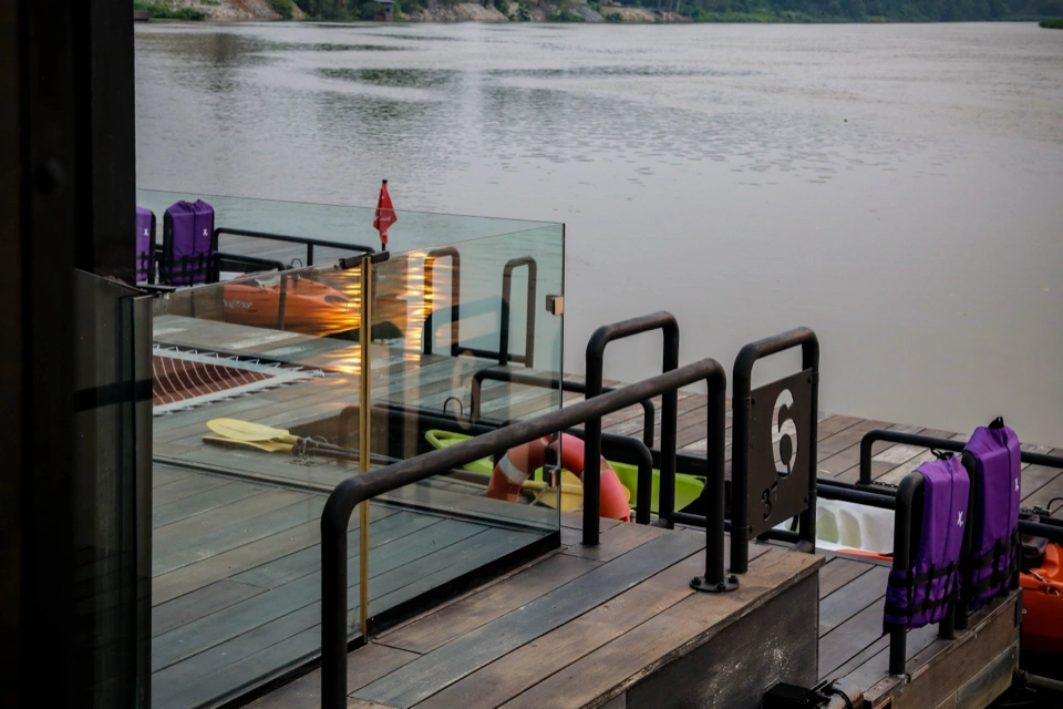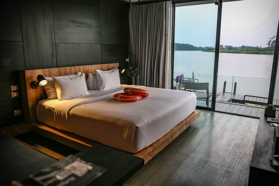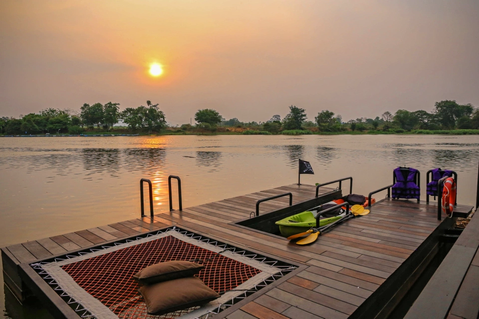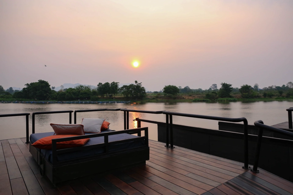 Sleep right on the River Kwai in a stylish floating cabin built for adventure, comfort, and serenity. Enjoy modern amenities, a rooftop deck, and a signature mesh nest bed under the stars. Reserve your X-Float Luxe today for an unforgettable riverside getaway!