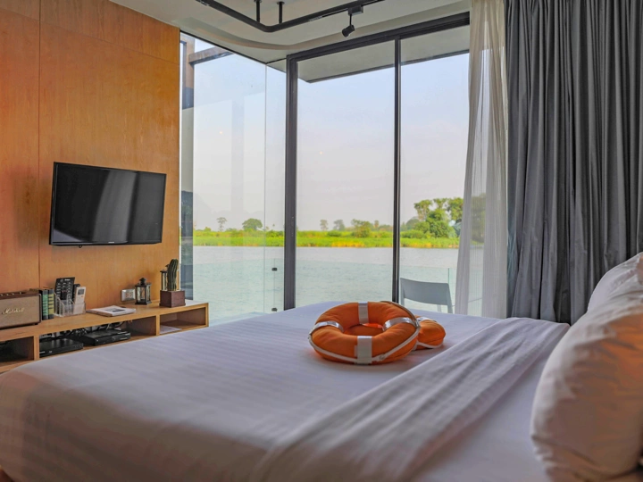 Have you ever dreamt of living on the water? This isn't no houseboat – it's a floating paradise! Our X-float boasts a private rooftop deck with jaw-dropping 180-degree river views, a spacious interior with chill vibes, and even in-room spa and breakfast services. Talk about living the dream!