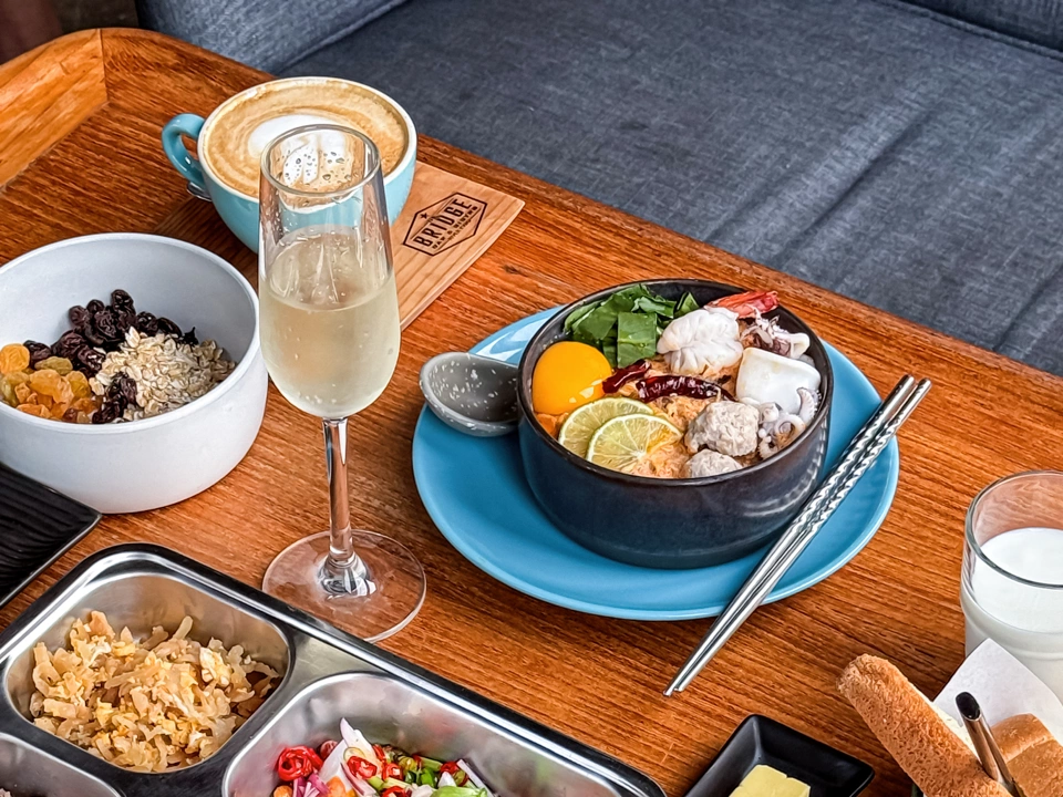 Begin each morning with a serene champagne breakfast, set along the quiet rhythm of the River Kwai.