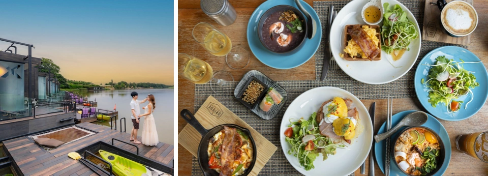 Traveling to your sanctuary is now faster and more convenient than ever via the M81 Motorway (Bang Yai-Kanchanaburi), allowing you to swap the city's hustle for a riverside embrace in record time. Once here, guests can explore nearby icons like Erawan National Park, Sai Yok National Park, or the historic Bridge over the River Kwai. Alternatively, you may choose to simply unwind at The Bridge Bar & Bistro, the resort’s signature riverside restaurant serving a curated selection of Thai and international cuisine.
